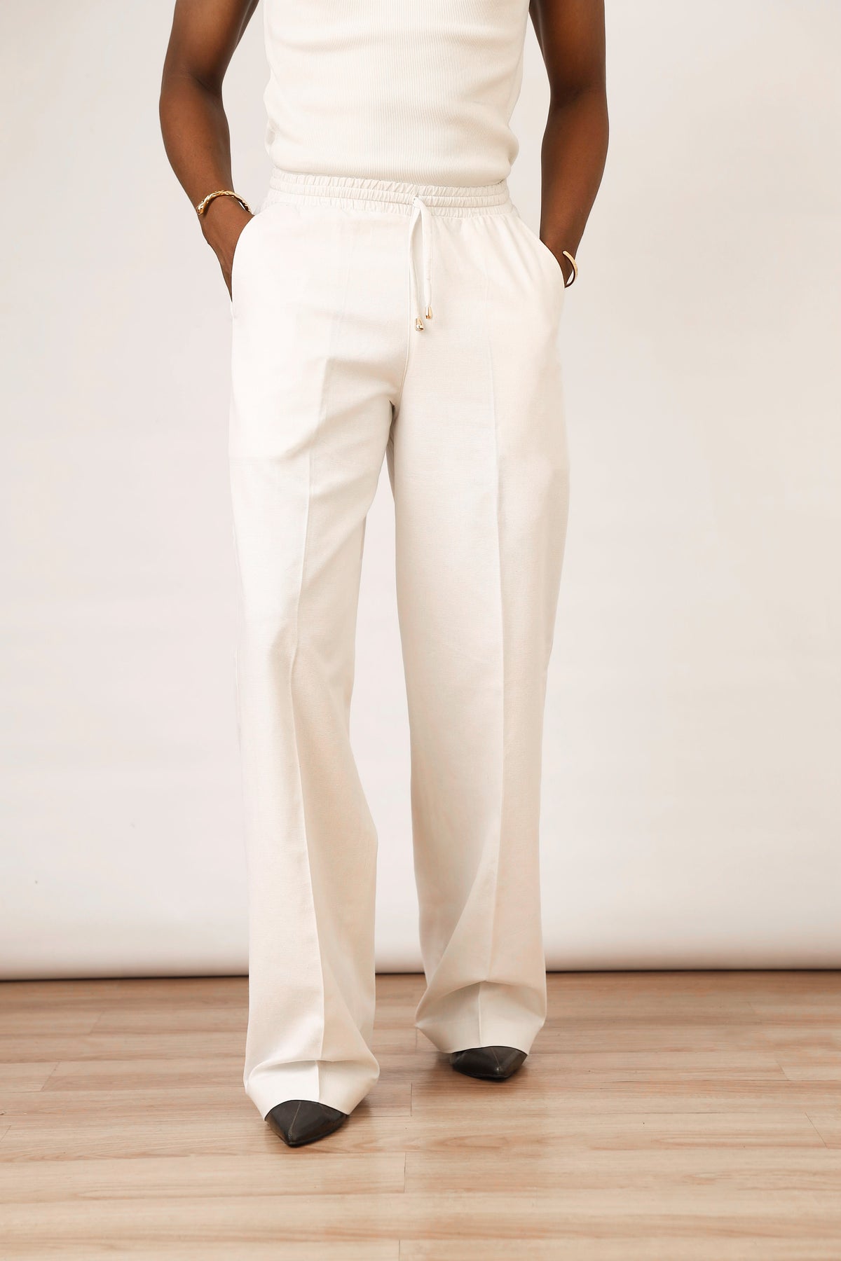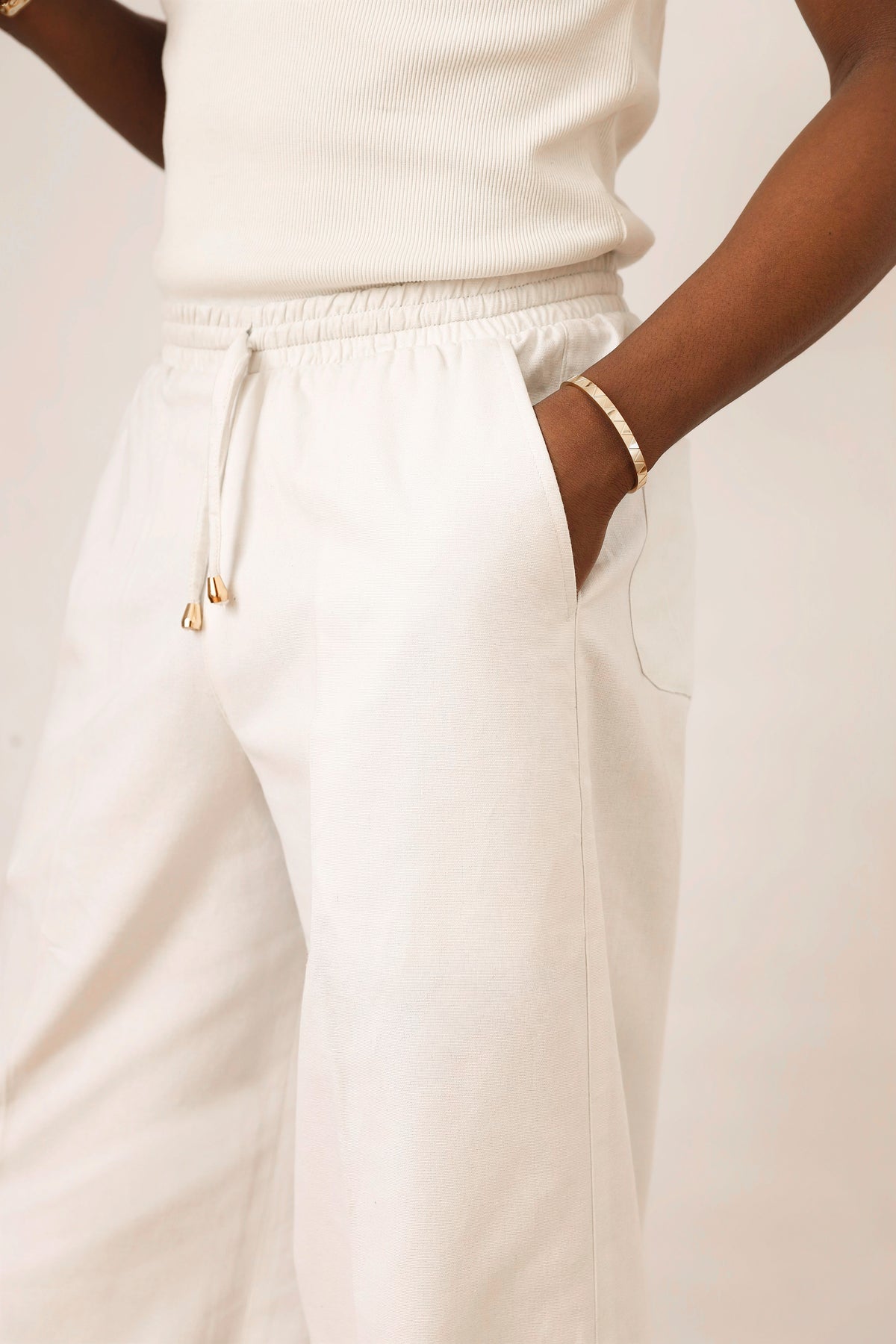 Cairo Linen Blend Baggy Drawstring Pants - White