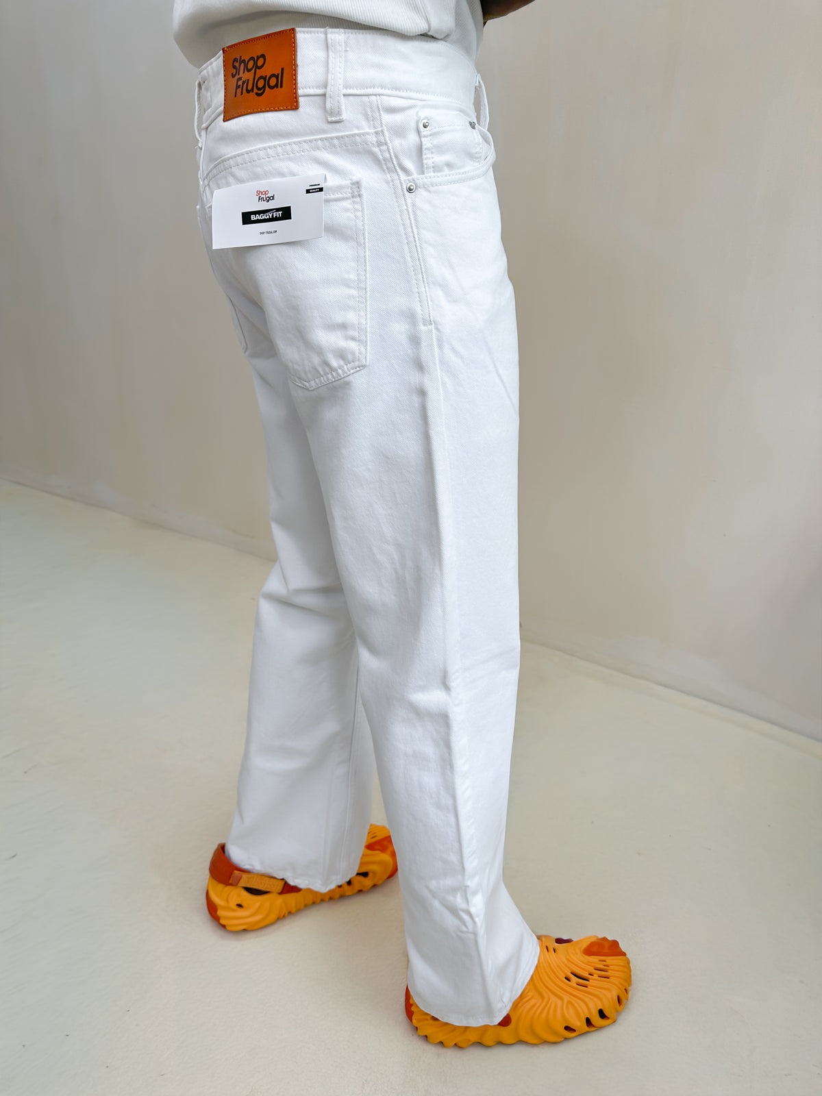 Callen Relaxed Wide Leg Jeans - White - L - W33/W34