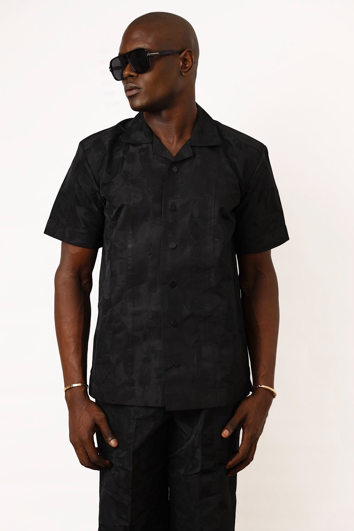 Elevate your warm-weather wardrobe with the Cruz Cuban Brocade Shirt. Crafted from a premium brocade fabric, this black short-sleeve shirt features a subtle, all-over tonal pattern for a sophisticated look. The classic Cuban collar and relaxed fit make it perfect for casual outings, beach days, or evening drinks. Pair it with shorts or matching trousers for a complete, stylish ensemble. Experience comfort and effortless cool with this versatile piece.